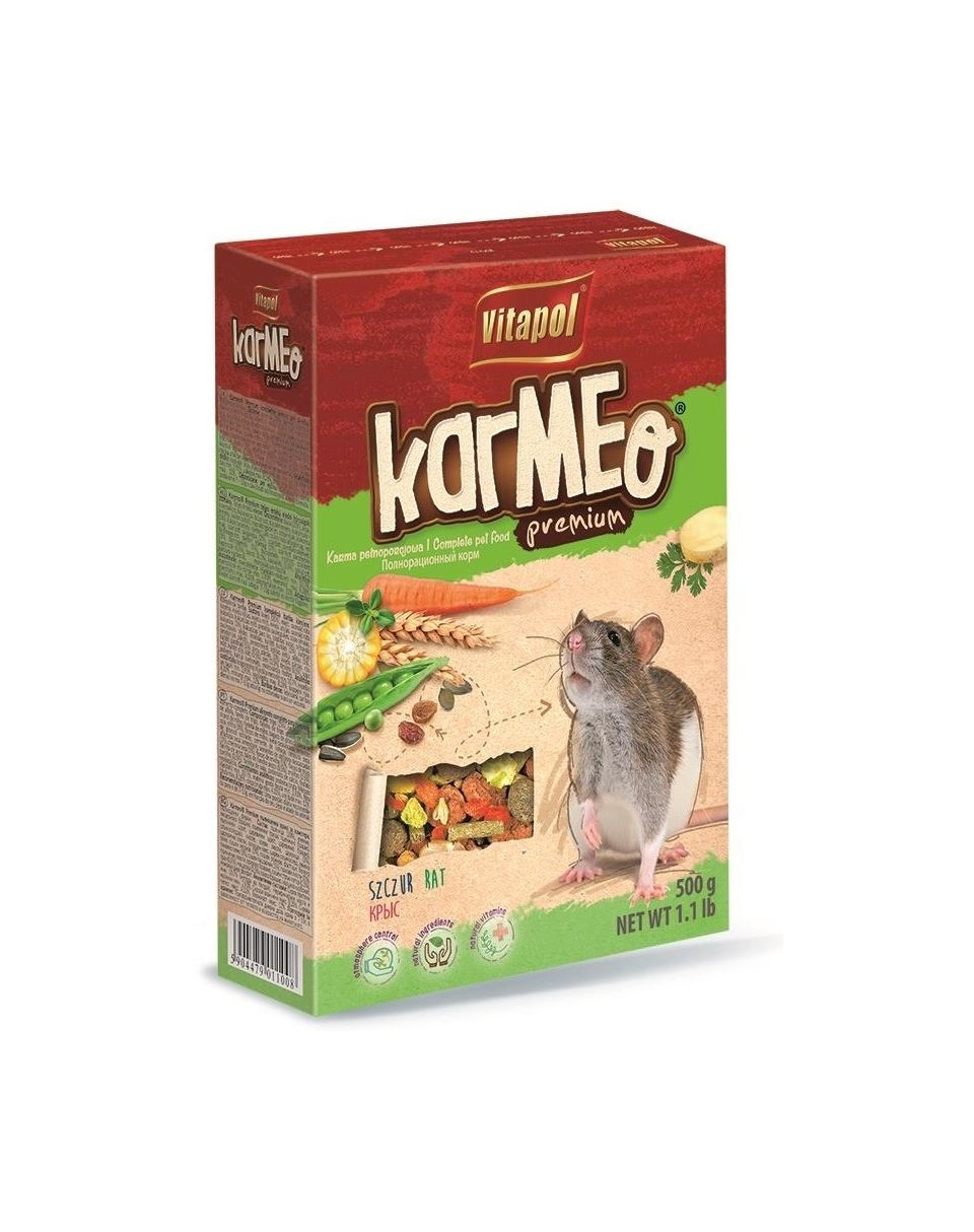 En komplet, afbalanceret foderblanding til rotter, der indeholder de grundlæggende bestanddele af kost til gnavere i deres naturlige miljø. Det er en blanding af korn, frø og granulat af bedste kvalitet, beriget med grøntsager og kødprodukter, der leverer animalsk protein, som er essentielt for udviklingen og funktionen af rottekroppen. Gulerødder med et højt indhold af beta-caroten, provitamin A, leverer vigtige mineraler som calcium, jern, fosfor, kobber, zink, molybdæn, magnesium, jod og kalium. Græskarkerner indeholder en stor mængde phytosteroler og umættede fedtsyrer samt letfordøjelige proteiner, vitamin E og sporstoffer som selen, magnesium, zink, kobber og mangan. Mynteblade indeholder æterisk olie, vitamin C og vitamin A. Tilsætningen af mynte fremmer fordøjelsen, forbedrer appetitten og forhindrer oppustethed.